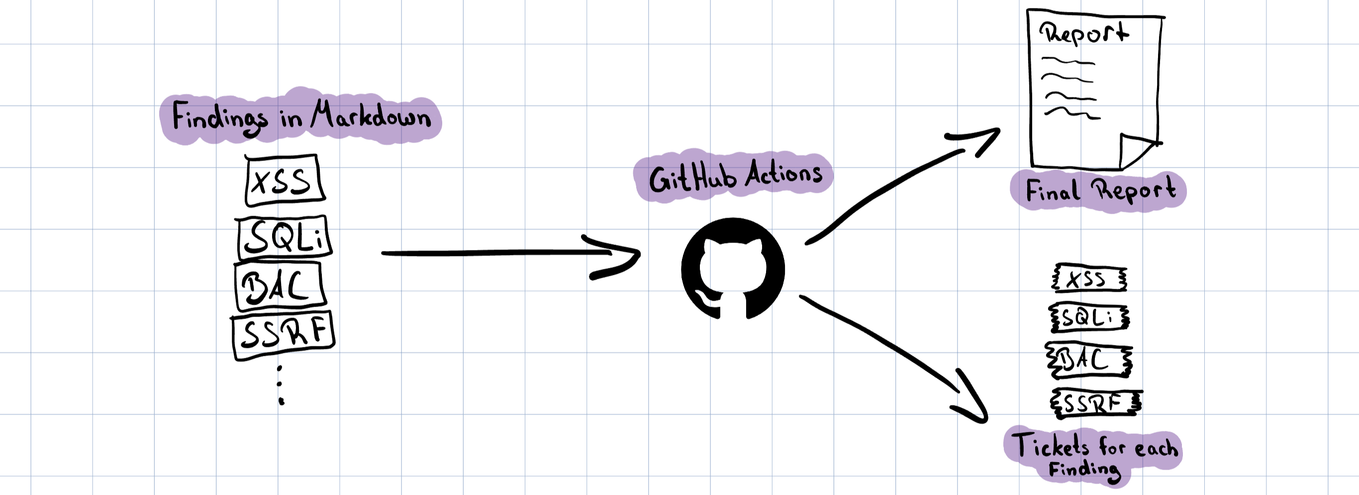 Ticket Creation for Findings: In addition to generating the report, another GitHub Action can be used to create tickets for each finding in a system like Jira. This integration ensures that the findings are not just documented, but also tracked and managed effectively, facilitating the remediation process.